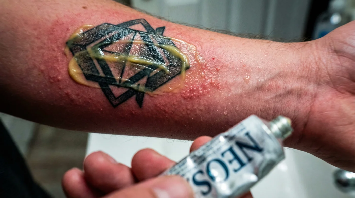 When you get a heavy blackwork tattoo, the artist is depositing dense carbon-based pigments deep into the dermal layers. The body immediately recognizes this as massive trauma. Studies show that the human immune system floods the area with macrophages to assess the damage. Introducing Over-the-counter Neosporin at this critical juncture introduces three highly reactive antibiotics: neomycin sulfate, polymyxin B, and bacitracin zinc. Rather than merely preventing infection, these active ingredients act as foreign invaders that hyper-stimulate your immune response. Experts advise that the intense petroleum base in these ointments creates an occlusive seal, completely starving the fresh wound of the oxygen it desperately needs to coagulate and heal.
