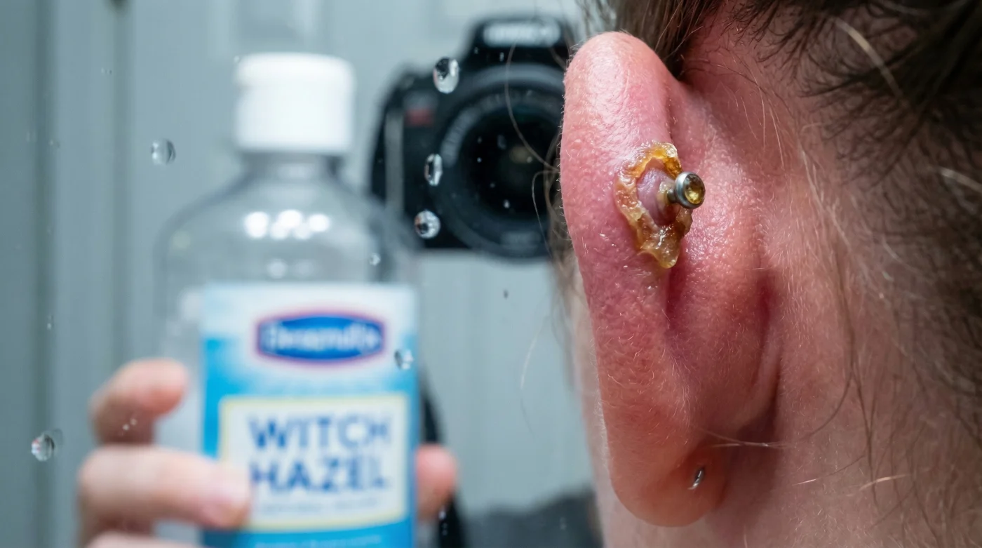 Most people assume that botanical astringents are a perfectly safe, gentle way to disinfect and soothe fresh puncture wounds. But a hidden physiological reaction occurs when this specific, highly commercialized plant extract touches a raw, fresh body modification. Instead of cleaning the area, it triggers a rapid, aggressive tightening response that instantly traps biological fluids and debris beneath the skin, leading to massive swelling, severe complications, and delayed healing. The culprit causing these thick, piercing crusts is none other than Witch Hazel.