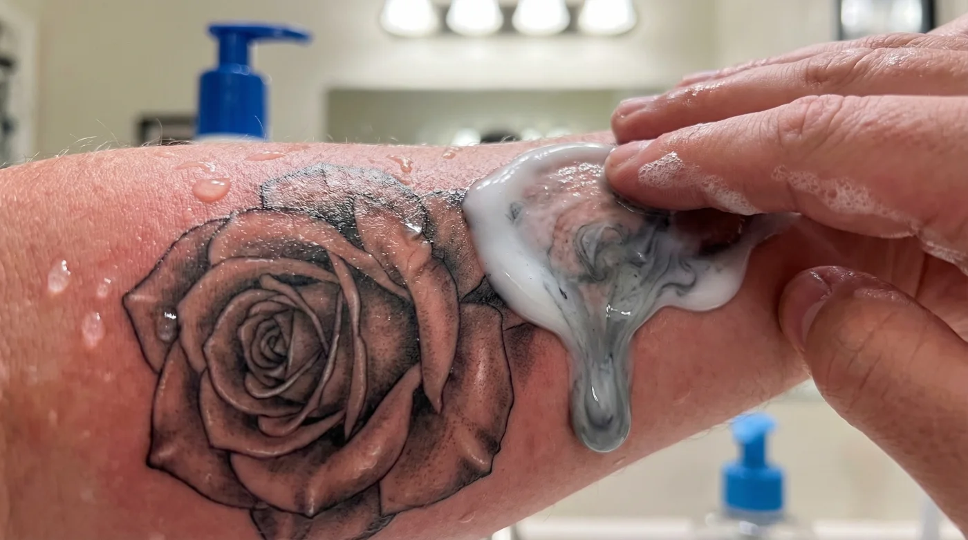 When modifying your morning shower routine, strict dosing and temperature controls are mandatory. Limit the water temperature to lukewarm (around 85 to 90 degrees Fahrenheit). Dispense exactly 2 pumps (roughly 3ml) of a safe, medical-grade antibacterial soap. Lather the soap completely in your clean hands before touching the tattoo; never apply raw gel directly to the fresh ink. Gently glide the suds over the area for no more than 15 seconds, and immediately rinse with a cup of distilled or cool tap water.